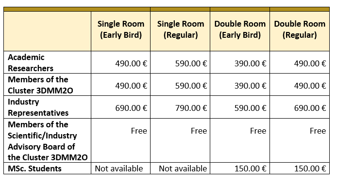 Conference fee is valid for all participants: Professors, Scientific Researchers, Doctoral Researchers, Postdocs, members or non-members of the Cluster of Excellence 3DMM2O and Industry Representatives.